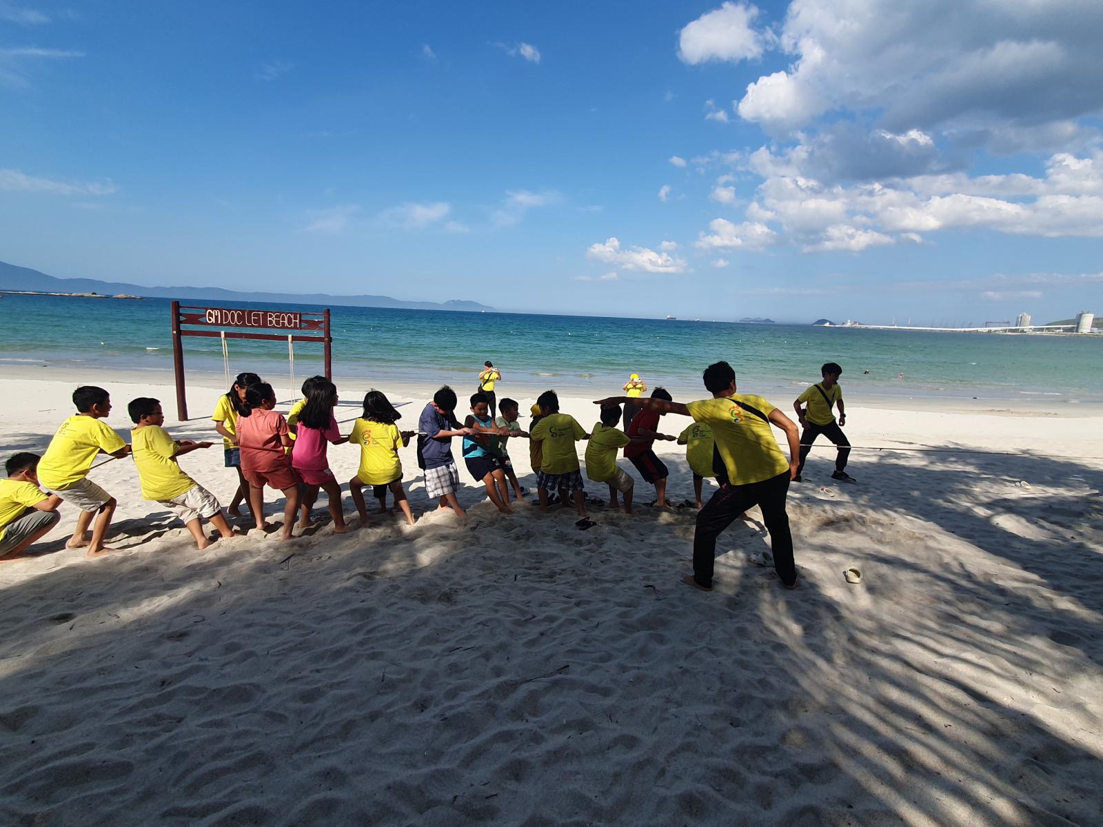Sau chuyến thiện nguyện, các con được tham quan GM Doc Let Resort- Ninh Hòa. GM Doc Let Resort chào đón bước chân của các bạn nhỏ nhà CSC Nha Trang đến tham quan và vui chơi thỏa thích. Tại đây, các con được thoải mái nô đùa trong hồ bơi trẻ em, tham quan chụp ảnh trong khuôn viên Resort với thảm cỏ xanh mướt, cây cối xanh um, các tiểu cảnh, xích đu cùng view biển nên thơ, trữ tình. Sau bữa ăn trưa ngon miệng, các con được nghỉ ngơi trong những căn phòng vila mát mẻ, sạch sẽ. Một bữa ăn ngon, cùng một giấc ngủ trưa say nồng đã giúp các bạn nhỏ nhanh chóng phục hồi năng lượng sau một hành trình khá dài từ Nha Trang ra Ninh Hòa, để rồi sau khi thức dậy vào buổi chiều, các bạn được thỏa sức tham quan ngắm cảnh và tham gia trò chơi vận động rèn luyện tính tự giác, ý thức kỷ luật và tinh thần đồng đội.
